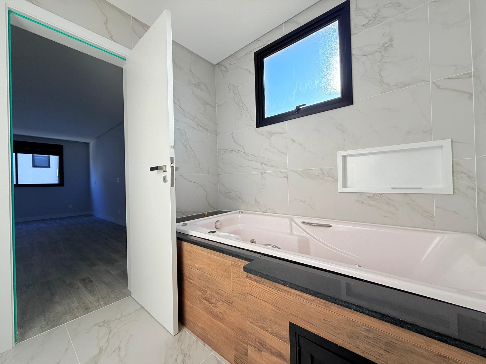 Casa 3 suítes em loteamento planejado no Rio Tavares, Florianópolis, com 184,81m² de área privativa no Villa Pamplona. Casa nova, nunca habitado, entregue em 2025, apresenta arquitetura contemporânea com 3 suítes amplas sendo 1 suite master com banheira. O projeto privilegia ambientes integrados e acabamentos de alto padrão, ideal para famílias que buscam conforto e sofisticação.